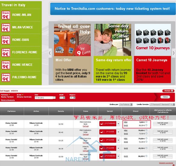 意大利SuperEconomy票,是一種經濟票原名(MINI),是意大利推出以提前購買為前提的優惠票,所以一定要提前才能預定才能獲得優惠,預定方式可以提前在意鐵...